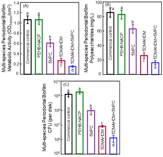 - Zhou, H.; Liu, H.; Weir, M.D.; Reynolds, M.A.; Zhang, K.; Xu, H.H. Three-dimensional biofilm properties on dental bonding agent with varying quaternary ammonium charge densities. J. Dent. 2016, 53, 73–81. [Google Scholar] [CrossRef] [PubMed]