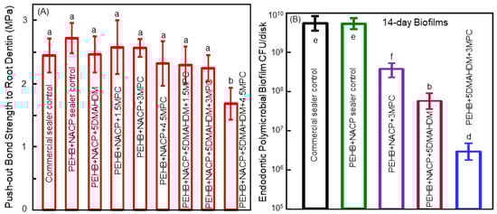 - Imazato, S.; Kinomoto, Y.; Tarumi, H.; Ebisu, S.; Tay, F.R. Antibacterial activity and bonding characteristics of an adhesive resin containing antibacterial monomer MDPB. Dent. Mater. 2003, 19, 313–319. [Google Scholar] [CrossRef]
