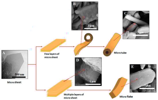 Schematic representation of the formation of micro rods and micro flakes in the product.