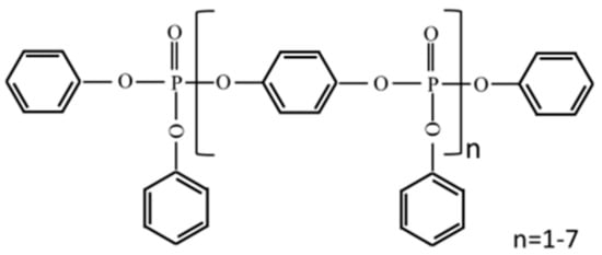 The chemical formula of resorcinol di(phenyl phosphate) (RDP).