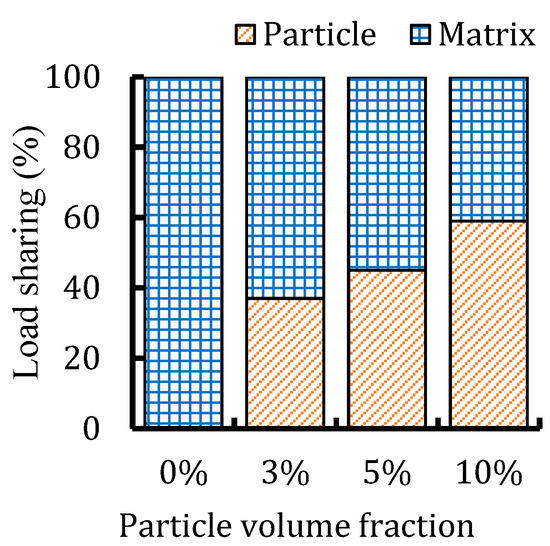 - The sharing load of particles in the composite with 10% particles was approximately 60%, whereas this value for the composites with less than 10% particles was lower than 50%.