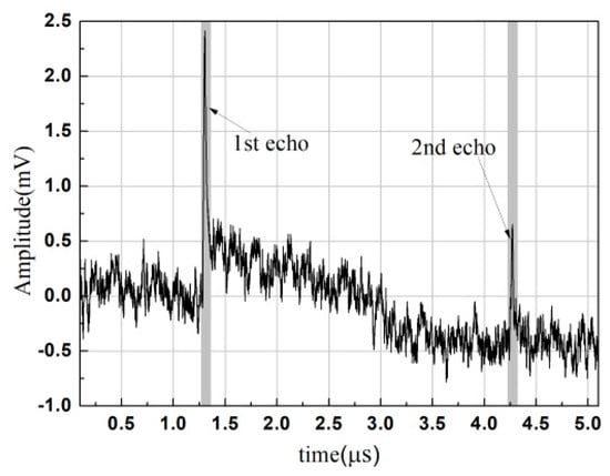 Laser-generated ultrasound waveform measured for α-titanium alloy annealed at 800 °C holding for 1 h.