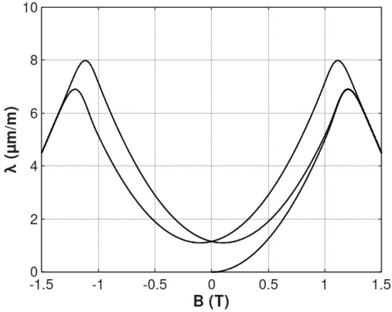 Finally, the λ(B) hysteresis loop can be calculated as a sum of the components of magnetostriction:
