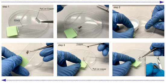 The process of PyC dry transfer to PDMS.