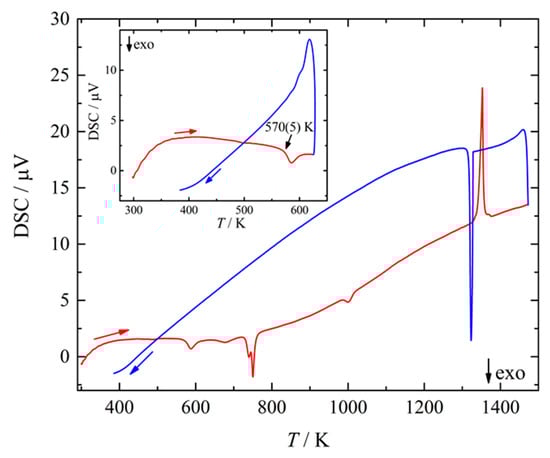 Differential scanning calorimetry (DSC) experiments were realized in a Netzsch DSC 404 C device (Netzsch-Gerätebau GmbH, Selb, Germany) operated with heating and cooling rates of 10 K/min under argon atmosphere using corundum crucibles.