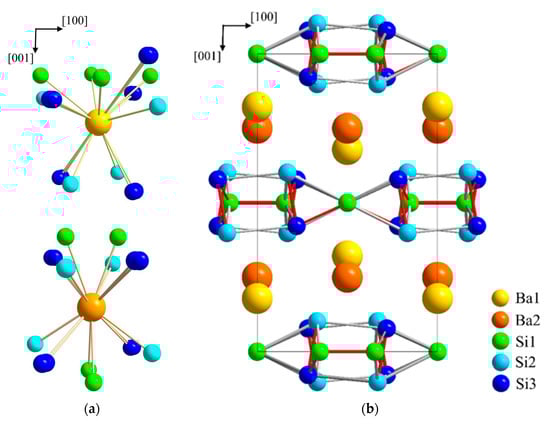- Widera, A.; Schäfer, H. Darstellung und Kristallstruktur des Ba2Si. Z. Naturforsch. 1976, 31, 1434–1435. [Google Scholar] [CrossRef]