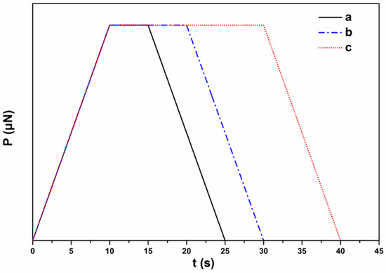 3.5. Influence of the Creep Time on the Elastic Modulus and Hardness Values