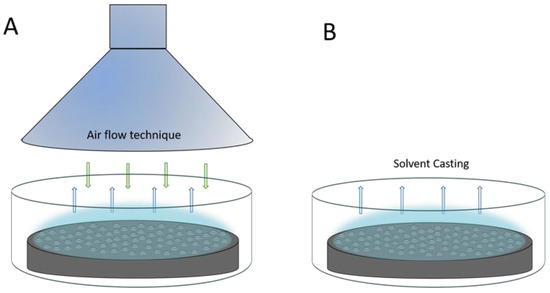 (A) Air flow or dynamic technique, and (B) solvent cast or static technique.