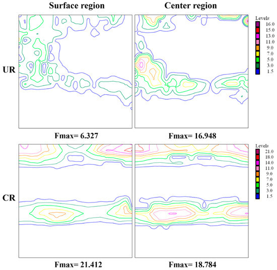- Many microshear bands and well-defined microbands occurred in the UR sheets, especially in the center region, while fragmentation within the {111} and {100} matrices in the CR sheets was more uniform along the thickness.