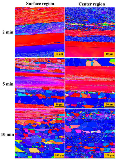 - Mishin, O.V.; Godfrey, A.; Juul Jensen, D.; Hansen, N. Recovery and recrystallization in commercial purity aluminum cold rolled to an ultrahigh strain. Acta Mater. 2013, 61, 5354–5364. [Google Scholar] [CrossRef]
