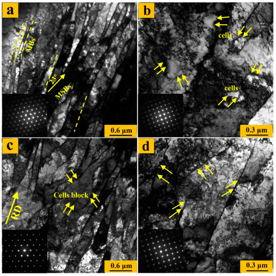 - Both TEM and SFDR analysis show that there is more probability of activing the primary slip system of the matrix with the {111} orientation than with the {100} system, particularly in the center region, during the UR process. Deformation was relatively even, and multiple slip systems tended to be activated for the CR-Ta.