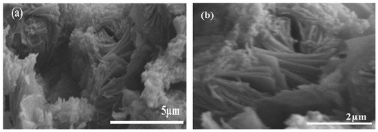 Figure 3 shows the cross-sectional SEM pictures of CS/MAG and CS/KH550/MAG hybrid membranes. Consistent with the experimental results of the XRD analysis, both hybrid membranes indeed possessed the distinct layered structure. It was determined from the cross-section SEM pictures that both hybrid membranes were fabricated by the densely layered structures from the MAG layers and the CS matrix. However, there was a difference between the so-called “interpenetrating petals” structure and the “bricks and mortar” structure in imitating the nacre materials [3]. Researchers have reported that unlike inorganic layered materials, such as MMT, CaCO3, TiO2, GO, Al2O3, LDH, and Al(OH)3, the layers of MAG were like the rose petals [30].