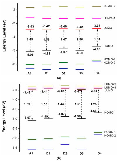 - Xu, M.; Li, R.; Pootrakulchote, N.; Shi, D.; Guo, J.; Yi, Z.; Zakeeruddin, S.M.; Grätzel, M.; Wang, P. Energy-level and molecular engineering of organic D-π-A sensitizers in dye-sensitized solar cells. J. Phys. Chem. C 2008, 112, 19770–19776. [Google Scholar] [CrossRef]