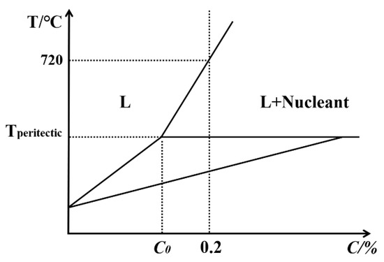 The Al-0.2%Zr alloy was prepared using a high-purity commercial aluminum ingot (99.99%) and Al-10Zr master alloy (all the chemical compositions throughout the paper are in weight percent unless otherwise specified). The liquidus temperature of the Al-0.2%Zr alloy was calculated to be 720 °C using the JmatPro software (Sente Software Ltd, Guildford, UK); this was considered the equilibrium precipitation temperature of primary Al3Zr acting as potential nuclei. The chemical composition of the Al-0.2%Zr alloy is listed in Table 1.