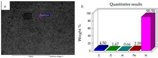 (a) Micrograph of Ni–Al2O3 nanocomposite coating (b) Energy-Dispersive X-ray Spectroscope (EDS) analysis results.