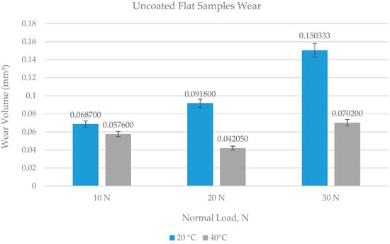 Wear volume of uncoated flat specimens.
