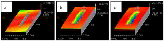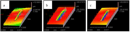 Wear track for HFE-7000 temperature 20 °C with Ni–Al2O3 coated specimens. At normal loads of: (a) 10 N (b) 20 N (c) 30 N.
