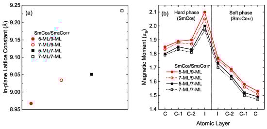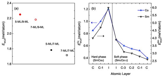 (a) Magnetocrystalline anisotropy energy (); (b) Partial of Co and Sm with respect to the atomic layer of 5-ML/9-ML multilayer.