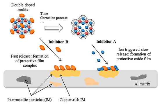 - Ferrer, E.L.; Rollon, A.P.; Mendoza, H.D.; Lafont, U.; Garcia, S.J. Double-doped zeolites for corrosion protection of aluminium alloys. Microporous Mesoporous Mater. 2014, 188, 8–15. [Google Scholar] [CrossRef]