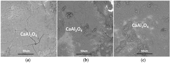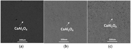 SEM micrographs of the CaO–Al2O3-based mold flux after CSLM measurements: (a) 100 °C·min−1, (b) 300 °C·min−1, and (c) 500 °C·min−1.