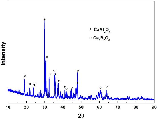 XRD patterns of the CaO–Al2O3-based mold flux at the cooling rate of 5 °C·min−1.