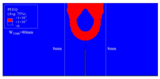The J-resistance curves of different “121” models under different material constraints are shown in Figure 5. It can be found that increasing of the width of 52Mb from 0 to 8 mm, the J-resistance curves of the “121” models increase. When the width of 52Mb is up to 8 mm, the J-resistance curves remain steady and will not change with the increasing of the 52Mb’s width.