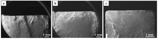 SEM images of the fracture surfaces of HIP+STA treated specimens in different surface conditions: (a) the ‘raw’ as-built surface, (b) the machined surface with the contour region and (c) the machined surface without contour region.