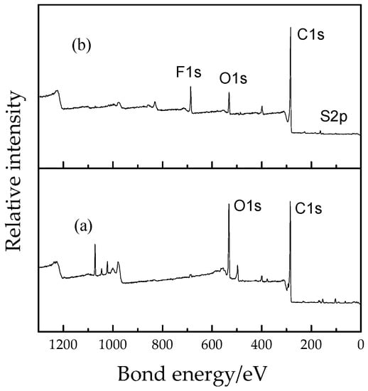 Figure 7 shows XPS spectrum of burnt residue of epoxy resin in air and in SF6 atmosphere. Figure 7a shows the XPS spectrum of the epoxy resin in air. It can be seen that the peak intensity of the oxygen element and the carbon element are relatively high.