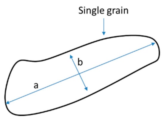 Schematic diagram for the dimensions in which the average grain size is measured.