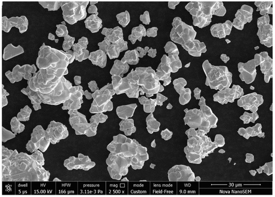 Scanning electron microscope (SEM) micrograph of marble dust powder.