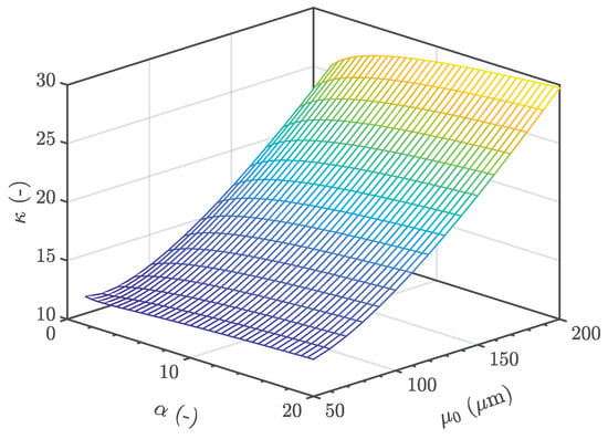 In order to estimate the fatigue strength of a given defect distribution, the size of the heterogeneity in an arbitrary control volume with a probability of occurrence is considered. Subsequently, the corresponding fatigue strength is evaluated, invoking the Chapetti approach as in [42,51] and the model of El-Haddad—see [40,41]. In addition, a local Weibull factor can be derived in order to enhance state-of-the-art fatigue design guidelines [22], depending on a reference inhomogeneity population represented by its location parameter , as depicted in Figure 15. Hence, the local factor steadily increases with elevated return period of an highly-stressed volume, which will eventually lead to a saturation of the statistical size effect, in line with conclusions made in preliminary studies—see [23].
