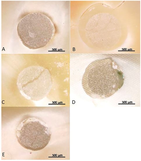 - Mallmann, A.; Jacques, L.B.; Valandro, L.F.; Muench, A. Microtensile bond strength of photoactivated and autopolymerized adhesive systems to root dentin using translucent and opaque fiber-reinforced composite posts. J. Prosthet. Dent. 2007, 97, 165–172. [Google Scholar] [CrossRef]