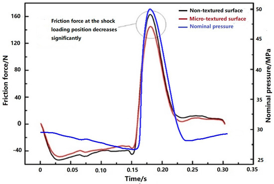 37]. The existence of micro-texture can significantly reduce the friction force between cylinder liner and piston ring during the whole stroke, especially at the shock loading position.