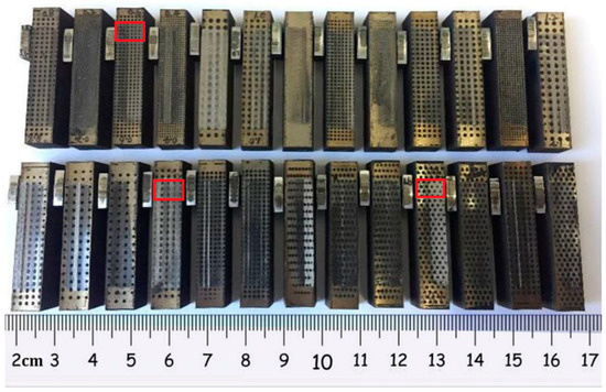 Figure 7 presents the typical tested PRCL samples. The position of cylinder liner in the red frame corresponds to the shock loading position at which the greatest friction force occurs in the reciprocating motion. At the end of the RHL stage, the wear amount of the frictional pair was too small to be measured; thus, the friction coefficient at the shocking dead center and non-scuffing time were used to evaluate the effect of the micro-dimpled textures on the scuffing performance.