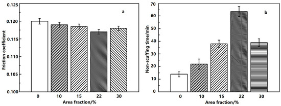 3.2. Effect of the Area Fraction on the Friction Coefficient and Non-Scuffing Time