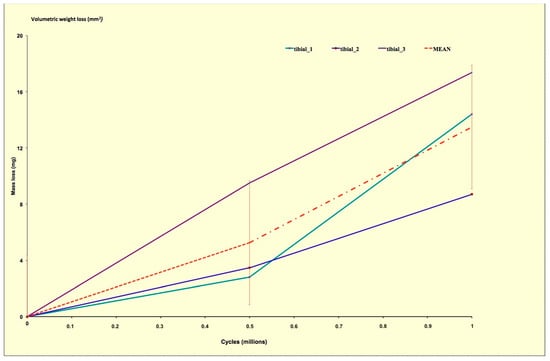 Our study focused on outlining a consistent protocol for DC knee wear simulation under the standard [,] and “high-demanding-activity” conditions [,], integrating a musculoskeletal multibody loads calculation procedure using different load profiles calculated from real life activities kinematical data in order to predict and reduce knee wear phenomena. Furthermore, the knowledge of the more realistic load profiles acting on the joint during walking gives the opportunity to investigate in an accurate way on the unsteady lubricating phenomena acting in the tribosystems by using novel lubrication models [,].