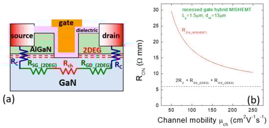 - Li, Z.; Chow, T.P. Channel scaling of hybrid GaN MOS-HEMTs. Solid State Electron. 2011, 56, 111–115. [Google Scholar] [CrossRef]