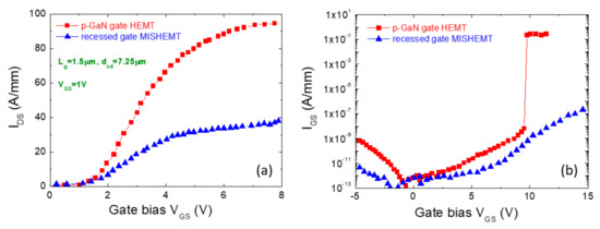 - Hwang, I.; Kim, J.; Choi, H.S.; Choi, H.; Lee, J.; Kim, K.Y.; Park, J.-B.; Lee, J.C.; Ha, J.; Oh, J.; et al. p-GaN Gate HEMTs with Tungsten Gate Metal for High Threshold Voltage and Low Gate Current. IEEE Electron Device Lett. 2013, 34, 202–204. [Google Scholar] [CrossRef]