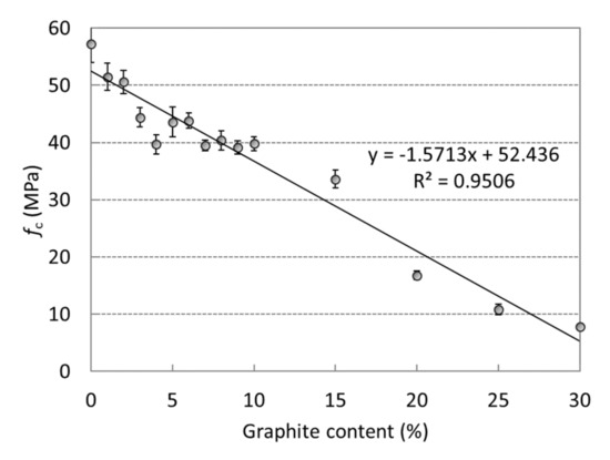 Compressive strengths of alkali-activated slag (AAS) composites with 0 wt%–30 wt% of graphite powder (standard deviations are presented as error bars).