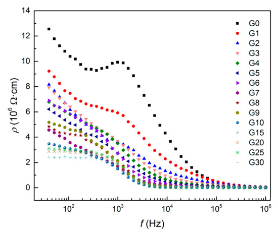 Electrical resistivity of AAS composites with 0 wt%–30 wt% of graphite powder as a function of frequency.