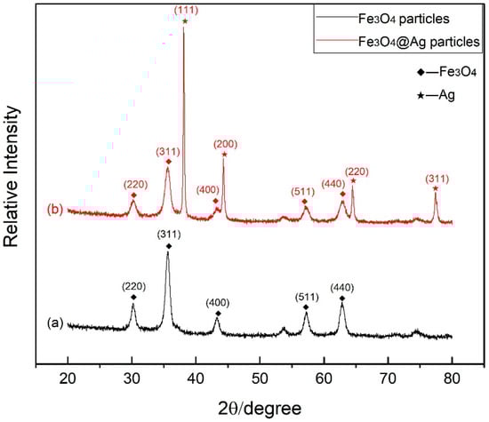 XRD patterns of (a) Fe3O4 particles and (b) Fe3O4@Ag particles.