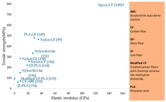 | Nylon: CF Nylon: Kevlar [156] | Fiber types | Carbon fiber, Kevlar fiber | Nylon: CF 0° | No (Mark One 3D printer) | No | 254.8 (CF), 150.2 (Kevlar) |