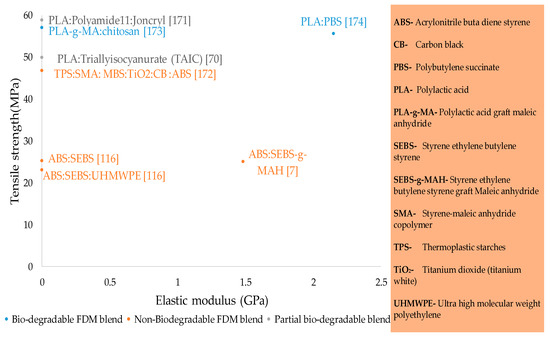 - Blends are segregated into three types: biodegradable, non-biodegradable, and partial biodegradable. However, blends are the least researched type of materials in FFF. The highest strength of 58.5MPa has been shown by the partial biodegradable blend. Like composites, blends are not researched in an ambient environment with temperature control. Therefore, this provides a novel area of research to combine this with the other aspects of blends.