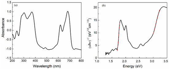 Figure 7a, where two principal bands can be observed. Electronic transitions between the HOMO and LUMO molecular orbitals were responsible for the intense Q and Soret bands in the visible and UV regions, respectively. These bands were related to the InClPc of the OFET and agreed with IR results [