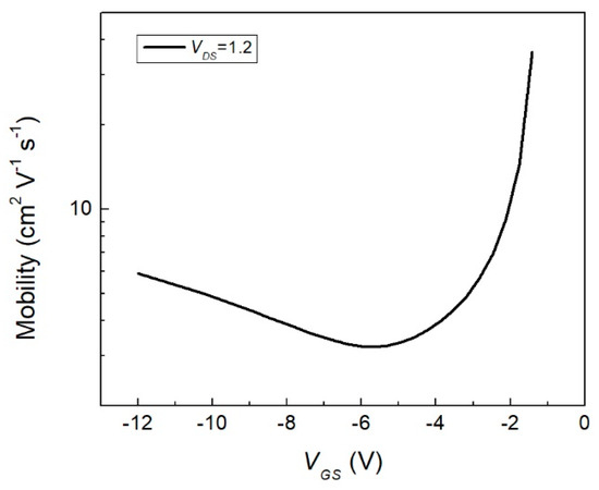 VGS was −12 V, the device had a second maximum mobility, which had a value of 5.9 cm