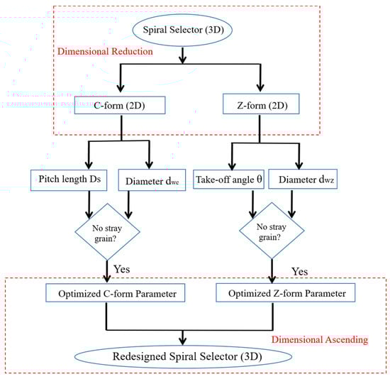 The flow chart of developing a high-efficient grain selector with the reduction dimensional method.