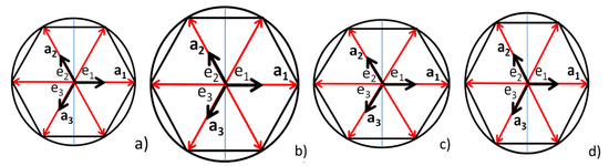 Figure 8 shows the basic reference system including versors ai (I = 1,2,3). Positions of atoms in the deformed configuration in the hexagonal configurations can be described by a vectorial equation: