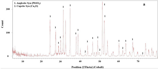 X-ray powder diffraction (XRD, D8-Advance, Bruker axs, USA) analyses (Figure 2) showed that the source of copper in the samples are chalcocite (Cu2S), cuprite (Cu2O) and native copper (Cu). The CSD also contained zincite (ZnO) and anglesite (PbSO4).