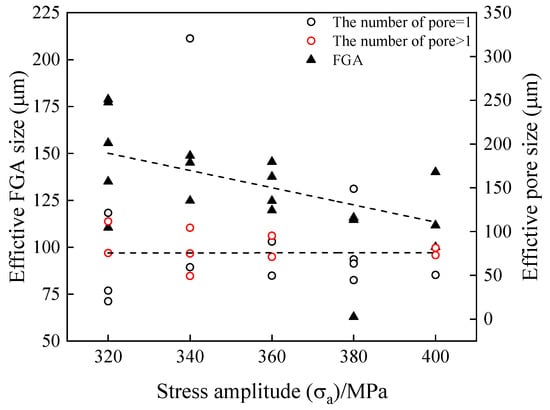 Relationship between the effective sizes of the pores and FGA and stress amplitudes.