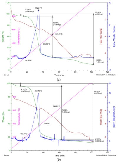 3. Finally, a thermogravimetric analysis (TGA) was carried out using a TA SDT Q600 equipment (New Castle, DE, USA), and the results are shown in